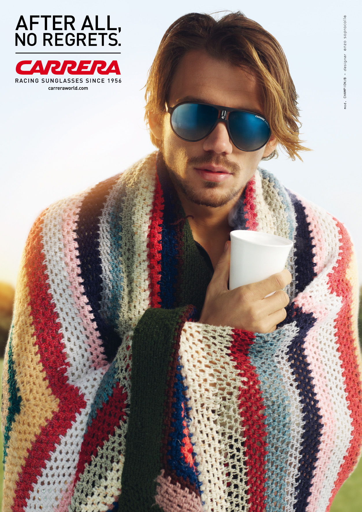 Głównym przesłaniem marki jest życie na pełnych obrotach. Młodzi ludzie z pokolenia CARRERA żyją szybko, pełnią życia, poszukując tylko czystej zabawy, intensywnych emocji, nocy pełnych zabawy i piękna, które mogą podziwiać. Doceniają intensywne momenty, dające radość, bez żalu i wyrzutów sumienia. Hało przewodnie ?Mimo wszystko, nie ma czego żałować!? mówi samo za siebie.